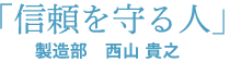 風通しが良く、若手社員が私のような上の世代とも気軽にコミュニケーションを取れ、失敗してもすぐにフォローできる環境であれば、若手社員が自然と挑戦する事を恐れず、確かな技術を身に付けることが出来ると考えていますので、そのような環境を作ることが私の最大の仕事だと考え、特に意識して取り組んでいます。会社全体としてもそういう社風が根付きつつあり、少しずつではありますが優秀な若手技術者が育とうとしています。その若手技術者が将来的にまた下の世代の社員を指導し、森川金属の技術と失敗を恐れないチャレンジ精神が継承され、会社全体が底上げされることこそが私の目標であり、若手社員の成長こそ私自身のやりがいになっています。